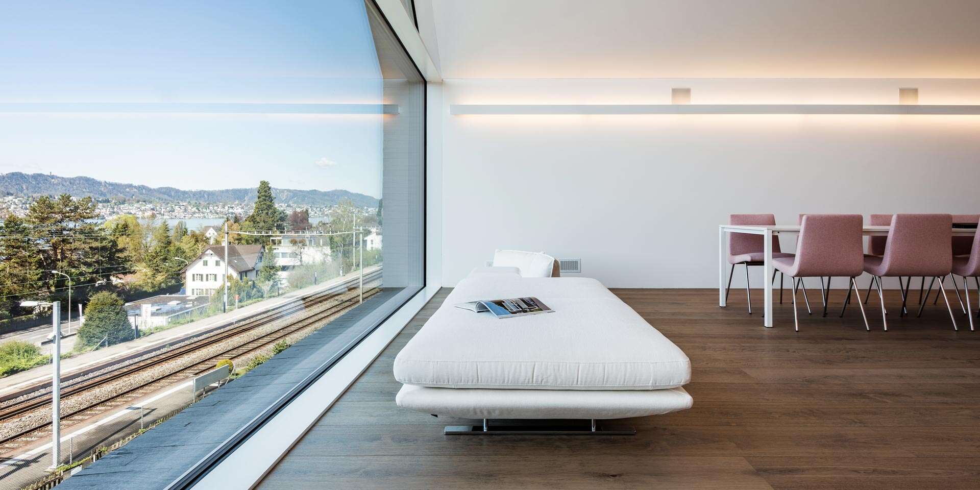 Relaxation and tranquillity within one‘s own four walls are important factors for quality of life. The system excels through excellent sound insulation (Rw = 46dB) – without any additional measures and over the entire frequency range. The window elements are built flush into their frames at the sides and bottom, minimising the area presented to the wind where it could generate noise.